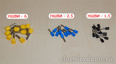 Чтобы подключить медные многожильные провода при помощи винтовых зажимов необходимо уберечь провод от передавливания винтом при затягивании контакта. Для этого применяют наконечники НШВИ.